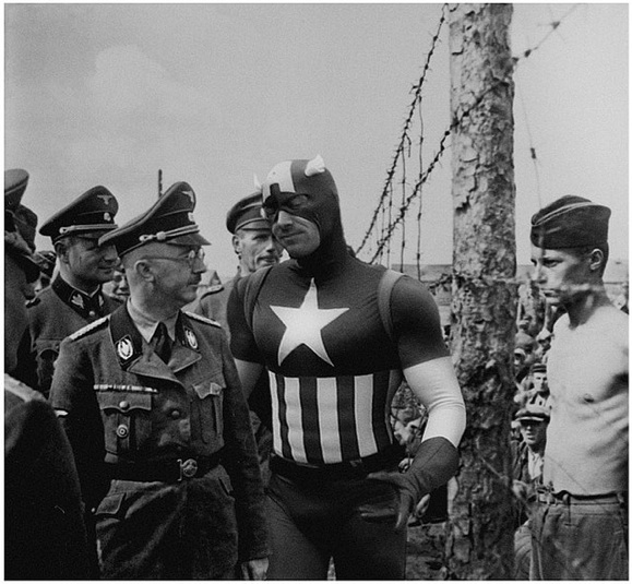捕虜を視察するハインリヒ・ヒムラーの前には・・・キャプテン・アメリカ?